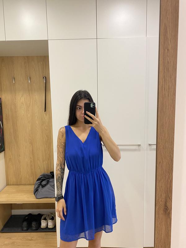Синее яркое платье от Befree. Состояние идеальное, на резинке на талии, с подкладкой. Размер — M/L Состав: полиэстер.