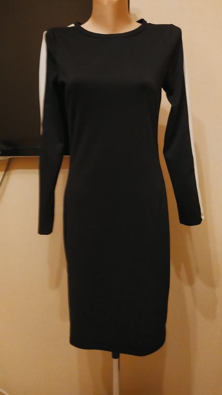 Трикотажна сукня з лампасами на рукавах.Не тонка.Пог-45,Пот-40,рукав-58,довжина-98.Без дефектів.