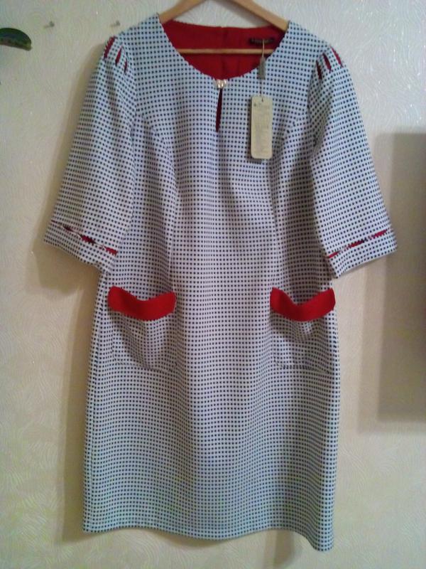 Платье пошито из высококачественного трикотажа. Этот материал прекрасно «садит» изделие точно по фигуре. Благодаря ткани и хорошему крою платье выглядит качественно и дорого. размер 54 Длина по спинке 106 см, рукав 43 см, пог по переду 57 см, пог по спине 54 см, пот 53 см, поб 59-60 см
