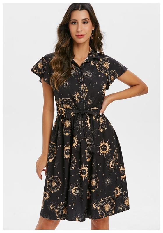 Платье миди в принт Dress Fo р. XL Основной цвет - черный. Замеры: - длина от плеча 103 см - ПОГ 51 см - ПОТ 41/42 см - ПОБ 83 см - от плеча до плеча 40 см