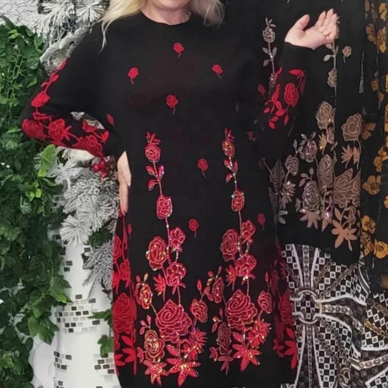 Шикарное теплое платте,принт цветы и стразы,шикарные.