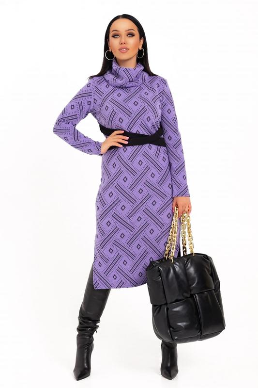 Стильное теплое платье с ёмким горлом, боковые разрезы, накладной пояс. КАЧЕСТВО ОТМЕНЕНИЯ Ткань:плотный трикотаж Длина платья-1.20см. Длина рукава-65см. Размер:42-46