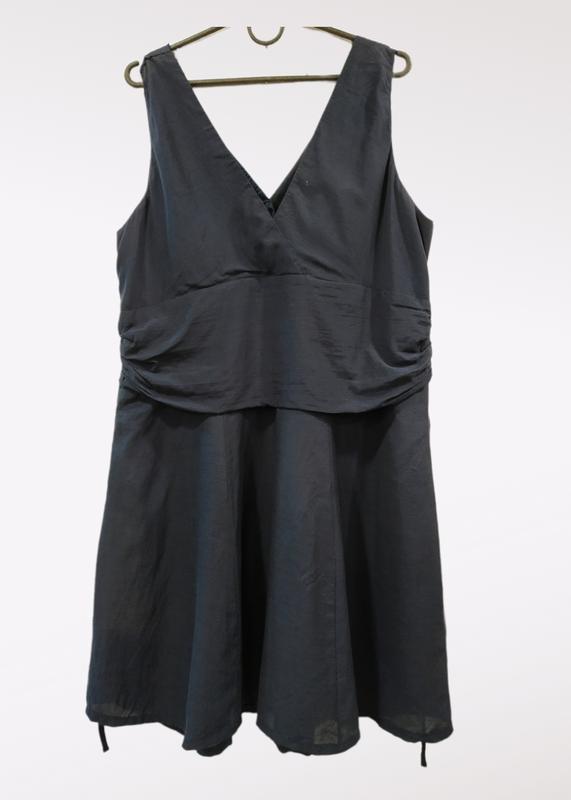 Красива сукня з легкої , приємної до тіла тканини. Шовковистої бавовняна. Іде на підкладці. Колір дуже темно синій, майже чорний. Новий стан.