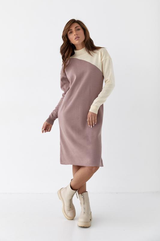 Модна в'язана сукня виконана з якісної пряжі. Манжети на рукавах, комір стійка. Будьте в тренді, відчуйте себе стильною, чарівною і в комфортному одязі! Розмір універсальний 44-48 Тканина: пряжа 50% вовна, 50% акрил Колір: фрез. Є кольори: фрез, синьо-жовтий, бежево-чорний Зріст моделі 167 см. Довжина сукні: 102 см, довжина рукава від горловини: 74 см. Не оформляйте замовлення на сайті, уточнюйте наявність ☝🏻 Доставка Новою Поштою після повної оплати або мінімальної передплати🚀 Відправлення ПН-ПТ при оплаті до 12 🎈 Завжди на зв'язку і готова відповісти на ваші запитання🙋🏻