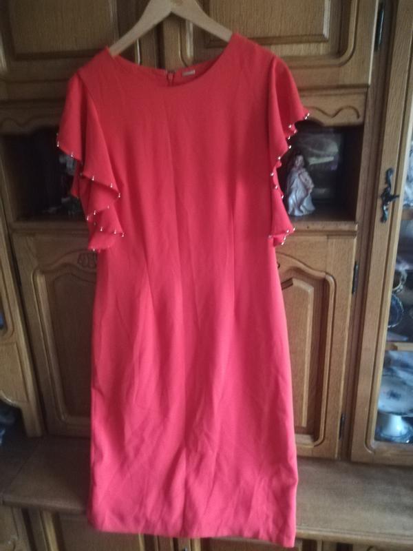 Ошатне, святкове плаття з американської посилки . Склад високоякісний поліестр. М'який, приємний на дотик. Плаття на підкладці. Ліф прикрашений воланами, оздобленими срібними бусинами. Гарний червоний колір. Якість ринку США. В цьому платті будь- яка жінка буде королевою вечірки. Заміри Пог 49 Пот. 44 Поб 53 Довжина 109 Розмір. 44-46