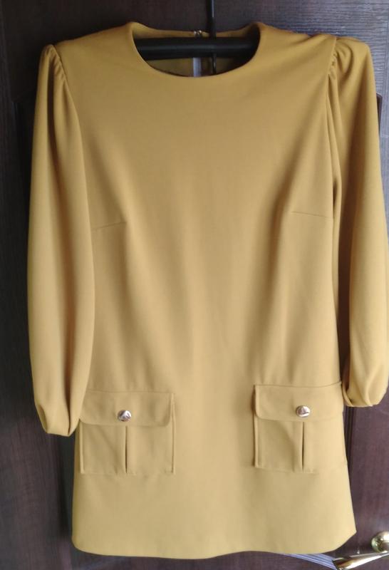 Продам сукню в гарному стані. Заміри: длина всієї сукні 86 от плеча до плеча 42 рукава 59 полу об'єм грудей 47. Має 2 кармани.