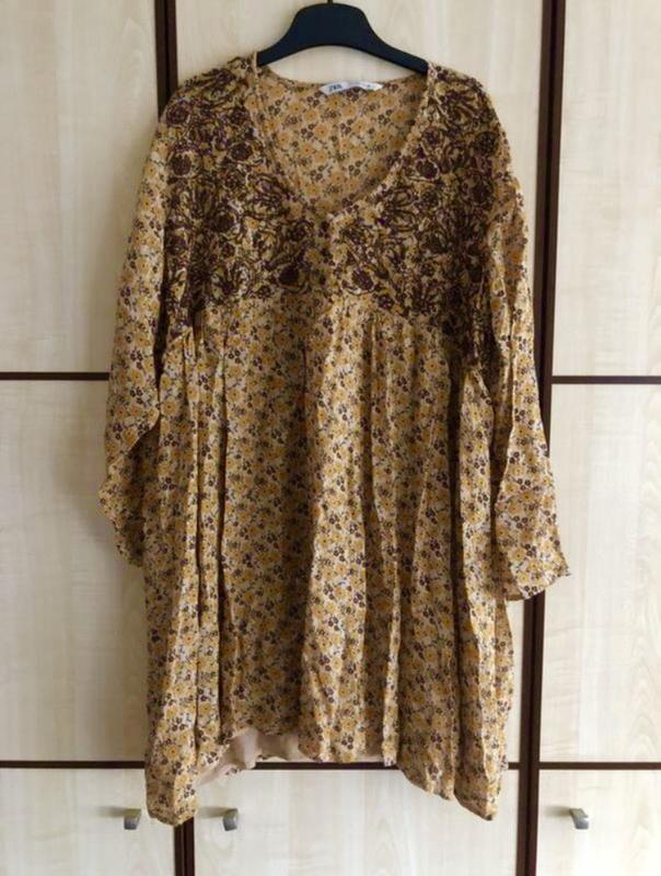 Красивое летнее платье из вискозы с подкладкой. Длина по спинке 86 см, рукав 57 см, плечи 44 см. По груди 54 см, по низу свободно - 105 см
