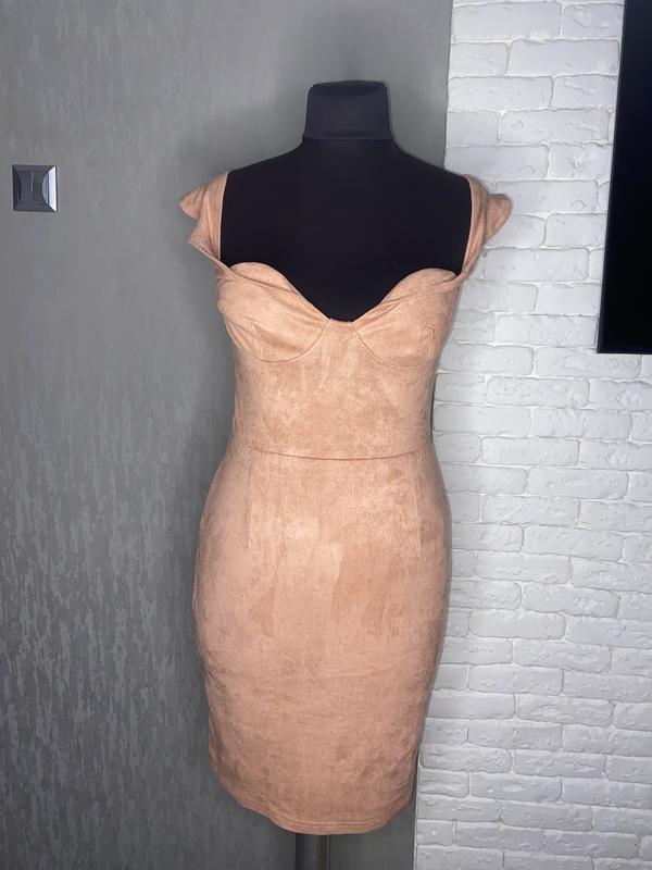 Нюдове Плаття коротка сукня під замш в стилі Oh Polly KooLook, L. Довжина 81см, ПОГ 47-53см , ПОТ 38-46см, ПОБ 47-56см. Колір -темна пудра