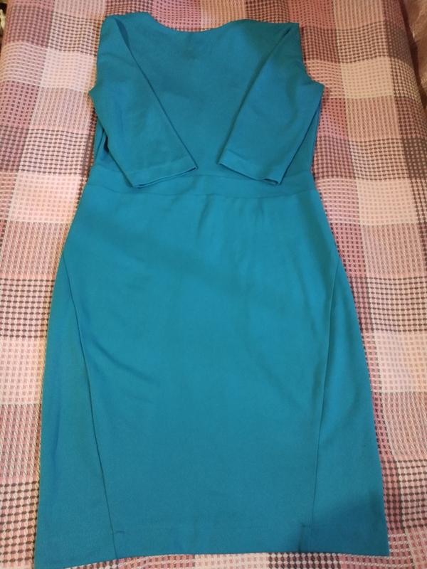 Сукня бірюзового кольору, силует приталений. Напівобхват грудей 51 см, талії 44 см, довжина 203 см. Трикотаж Lacosta, дуже добре тягнеться. Є невелика затяжка, показано на фото. Виробник - український бренд El-Mira.