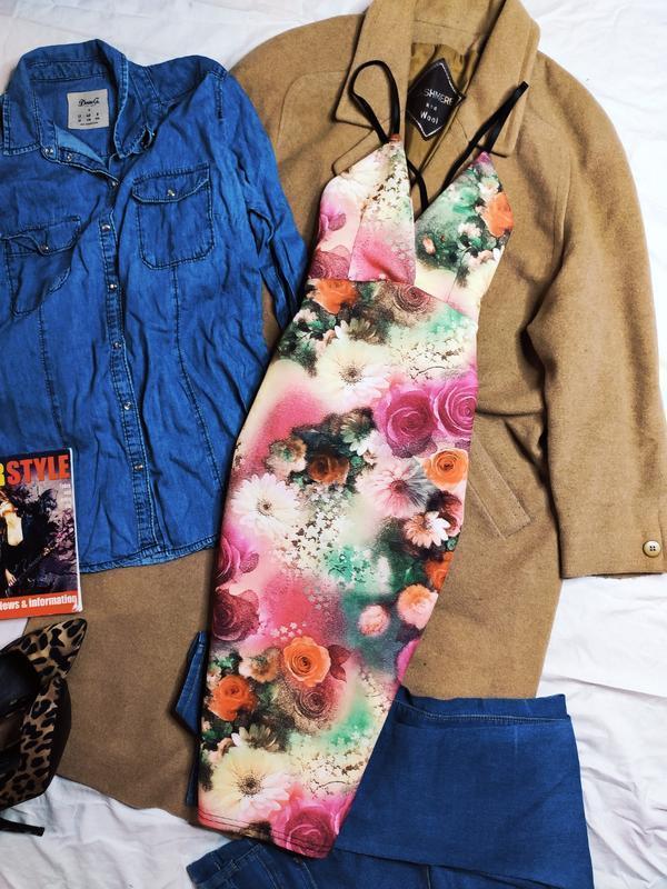 Style платье по фигуре карандаш футляр цветочный принт чёрное розовое миди новое на бретел...