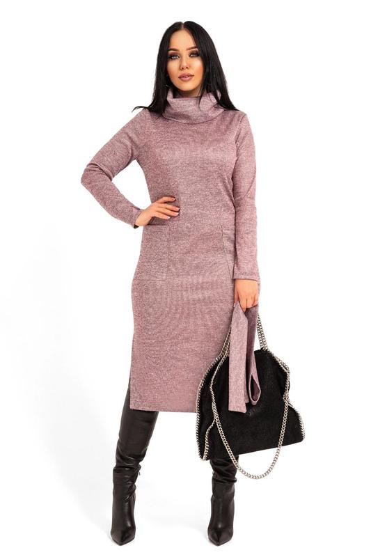 Сукня Модель № 7178-1 Розмір : 46-48; 50-52; 54-56; 58-60 Тканина : ангора - софт ГАРНА РОЗТЯЖНІСТЬ Довжина сукні : 118 см. Довжина рукава : 64 см. Стильна силуетна сукня з обьємним горлом , бокові розрізи , з кишенями , пояс із основної тканини йде в комплекті .