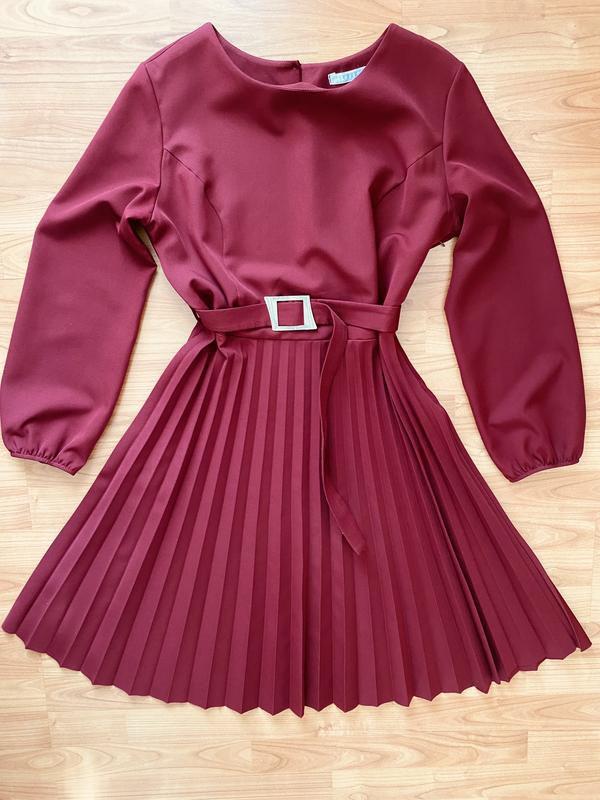 Плаття отрізне під пояс, гарно зроблений широкий рукавчик, низ плісерований