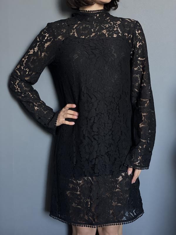 Мереживна/гепюрова прозора сукня з підкладкою. На спинці розріз з репсовою стрічкою. Виробник: H&M. Розмір: S. Одягалась разово на свято.