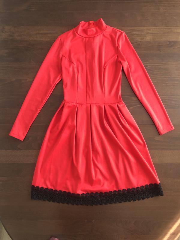 Жіноча сукня насиченого червого кольору. Спідниця оздоблена чорним квітковим мереживом. На спині потаємний замок. В ідеальному стані.