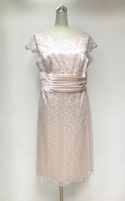 Платье женское нарядное кружево-атлас нежно розовое с коротким рукавом приталенное по бигу...