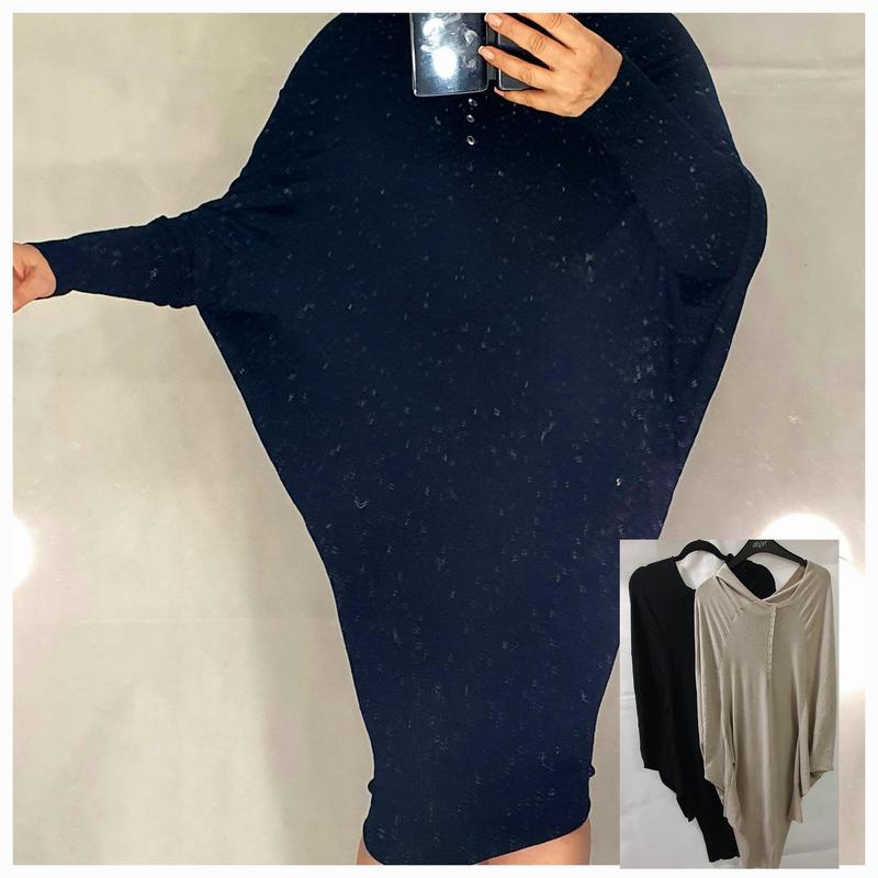Оригинальные платья в двух цветах бежевый и чёрный. Перевертыши. Можно носить в двух вариантах .Платьем как на фото и туника с горлом трубой Отличный состав пряжи. Мягенькое. Крутое. Размер S-M. Одевается и на Л-ХЛ. Рукав реглан летучая мышь. На фото одет на ХЛ. Состояние идеальное.На фото точки от камеры .( пыль).