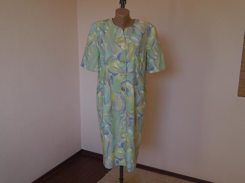 Плаття 44євро розмір Плечі-44, ПОГ-53, ПОталії-50, ПОстегон-55, довжина-107.На підкладці.Без бірки,схоже,в складі є льон.