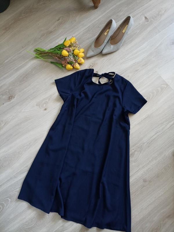 сукня шифонова чорнильного кольору, з підкладкою, на спині на зав'язці, що дозволяє регулювати виріз на спині