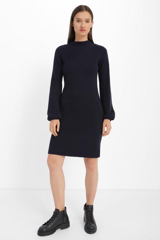 Жіноча в'язана сукня міді з довгими рукавами.