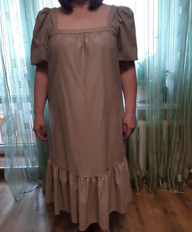 Сукня із дуже якісної еко-шкіри в ідеальному стані. Довжина 125см. Ширина під пахвами 61см. Ширина по стегнах 70см. Вдягалась тільки один раз.