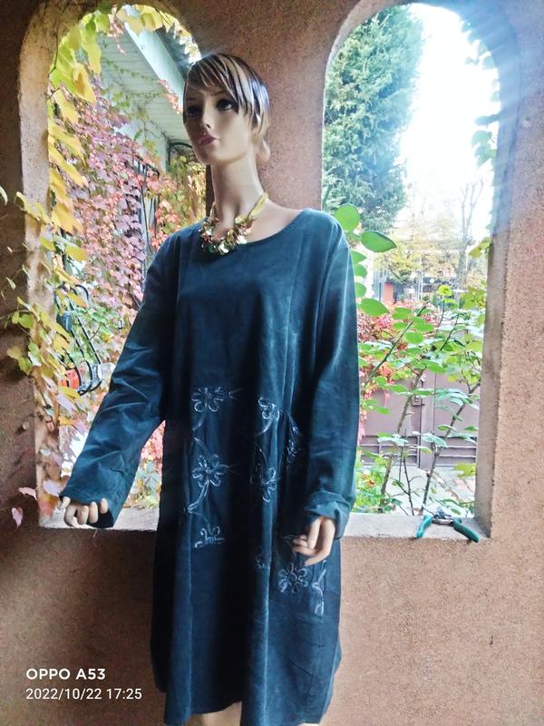 Сукня мікровельвет,бавовна 💯,колір тепла олива,3 фото передає наближено колір По колу стрічкова вишивка в тон сукні. Дві прорізні кишені,прямий вільний крій.Сукня універсальна: і класика і спорт.