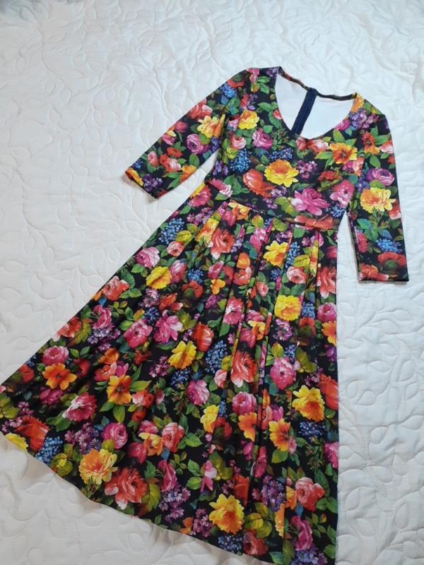дуже гарне платтячко в квітковий принт, дуже гарно виглядає га тілі, приємна тканина, як масло, довжина 101, пог 40, пот 34, рукав 40, плече 9, позаду застобуєтья на змійку, тканина тягнеться, півобхват по низу юбки 128