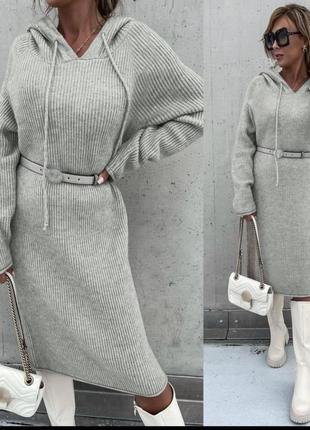Сукня з капюшоном Колір сірий, марсала Тканина: ангора рубчик Пояс в комплект не входить 01389