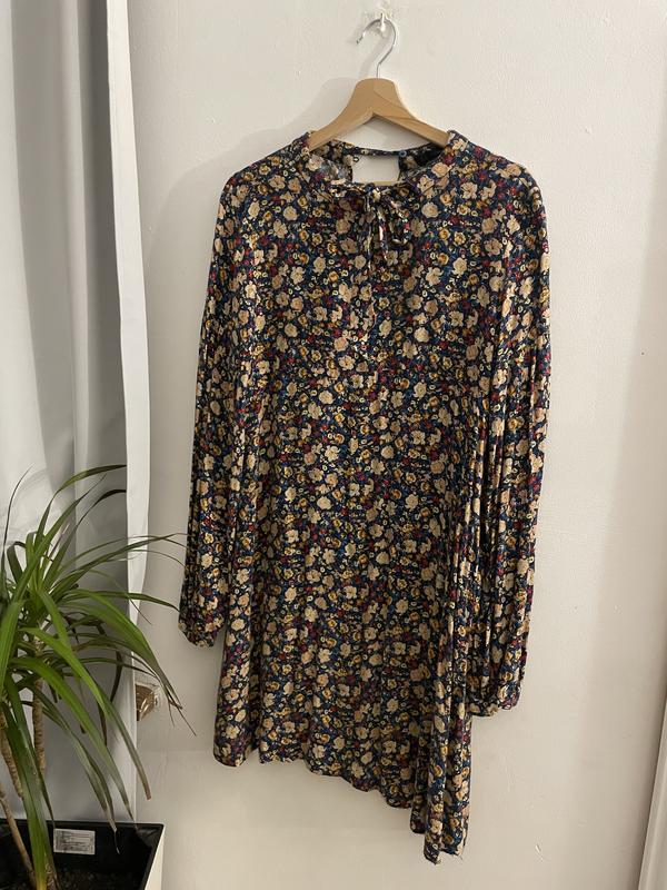 Сукня у квітковому принті у розмірі S в хорошому стані, один нюанс прострочений але не підшитий низ на 5 фото