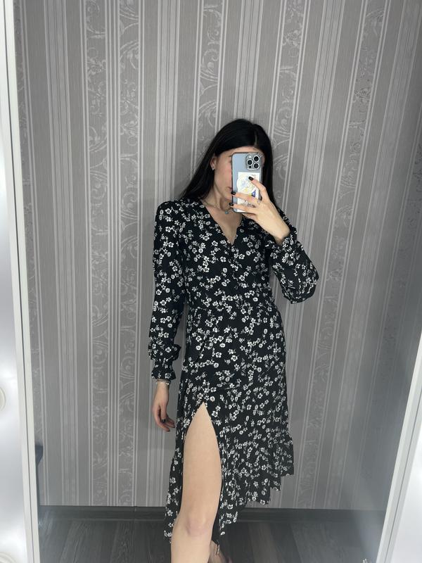 Сукня міді у квітковий принт з розрізом на стегні