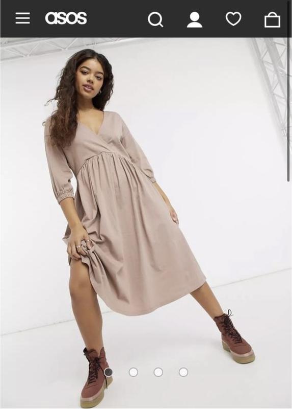 Сукня міді від ASOS Верх сукні на запах, відкрита спинка з завьязками на шії. Вільна підійде на S та М. 100% коттон Тканина легка і щільна. Колір мокко. Розмір 36 (S) Груди 83см Талія 65см Стегна 88,5 см Заказано з офіційного. сайту, вже в наявності, чекати не потрібно, швидка відправка. Обирайте безпечну доставку.