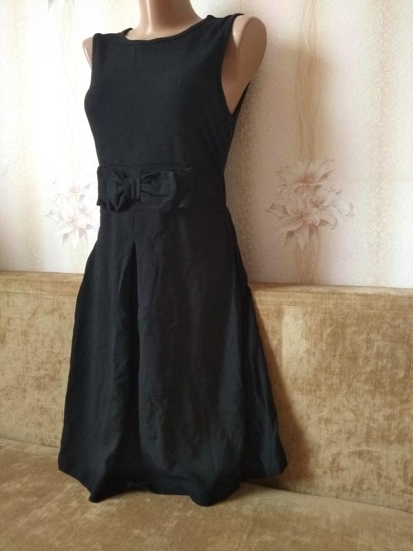 новое, сток, без навесного ярлыка маленькое чёрное платье next в классическом стиле застёжка потайная змейка сбоку юбка трапеция, со складкой от талии впереди на талии - двойной плотный бант - стационарный ткань плотный трикотаж стрейч, качественный размер наш 44 46 ориентируйтесь пожалуйста на замеры 👌 пог 42 пот 37 поб 52 свободный длина 94