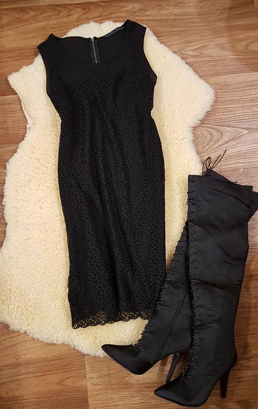 Миди платье ZARA из кружева з кружева и шифона сзади молния до лопаток верх до груди шифон сзади так же шифон и кружево кружево плотное ,мягкое есть подклад черный Длина - 96 см ПОГ - 50 см новое состояние