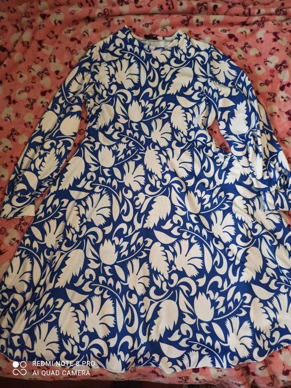 Чудова сукня, в ній ви не залишитись без уваги. Гарний принт, приємна щільна тканина. Пояс в тон у комплекті. Заміри : ОГ 58, ОТ 54, ОБ вільно, довжина 116, рукав 70,ширина 22.5. Рукавчик на манжеті. Нова, без бірки.