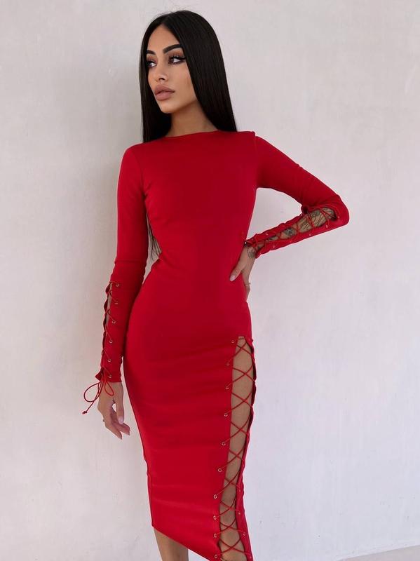 👆Сукня міді зі шнурівкою на ніжці та на рукавах Теанина трикотаж Джерсі Розміри : S, М Кольори : чорний, блакитний, червоний. Країна виробник Україна 🇺🇦