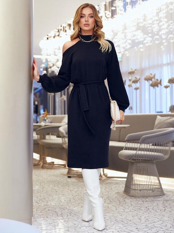 Плаття вільного крою з теплої та м'якої ангори з відкритим плечем чорне