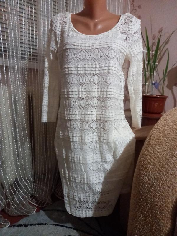 Платье кружевное . Фасон прямой . Рукав в три четверти. Длина-87см Пог-46см рукав-48см Пот-44см