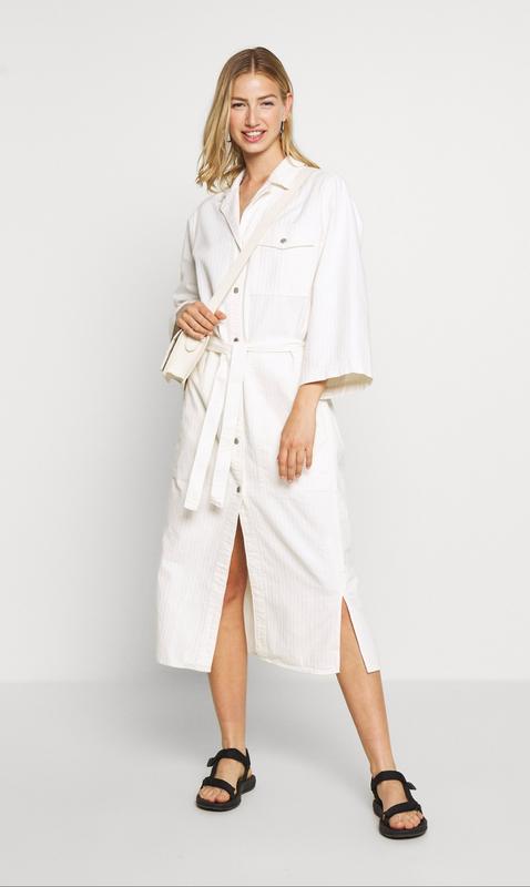 Джинсовое платье рубашка шведского бренда Weekday р. С, подойдёт на ХС-С. На фото рост 160см 83-64-83, нужен рост повыше. Состояние идеальное. Качество классное, цвет молочный, спереди на кнопках. Так же классно смотрится без пояса, по типу кокона, и более расслабленно. Замеры по запросу. Возврат не предусмотрен. Замеры : плечи 41см, рукав от плеча 47см, плечо +рукав 60см, поб.груди 51см, поб. бёдер 51см, длина от верхней точки плеча 124см.