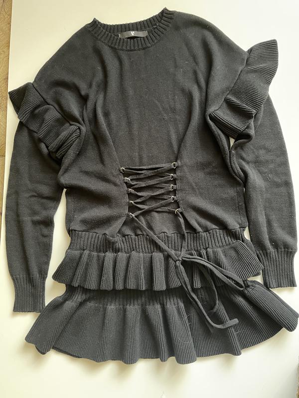 Красивенна тепла сукня насиченого чорного кольору ( фото не передає дійсний колір) . Можна носити як туніку( якщо одягати на широкі бедра) .Довжина 80 см, рукав від горловини 76, груди 52 см.