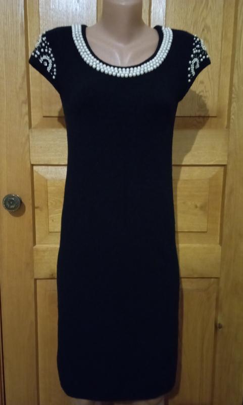 Тепленькое вязаное платье, в составе есть ангора, плечи 34, ПІГ 42, ПИТ 38, ПИБ 44, ткань хорошо тянется, длина изделия 92. Бирка срезанная, ткань без катышков.