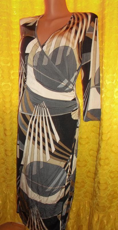 Платье стильное с запахом, по боку при собрано. Распродажа.Замеры ПОГ 42-46, ПОТ 30-40, длина 120, рукав 45, плечо 13.Платье без изьянов. Смотрите мои обьявления вещи с Германии.