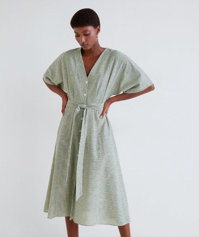 Доставка:Новая почта,Укрпочта после полной оплаты на карту продавца. Состав 83%хлопок,17%лен.Тонкая,легкая ткань. Указан размер S /US 4. Рукав кимоно,длина от ворота-41 грудь-свободно талия-36 бедра-58 длина-118 Отсутствует пояс.
