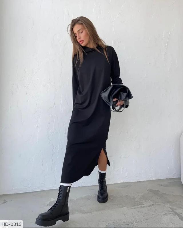 Сукня вільного крою, з розрізами з боків, можна носити з ременем, Виконано з щільної, якісної тканини Довжина від плеча 120 см Груди: 85 - 95 см Талія: 60 - 75 см Стегна: 90 - 98 см