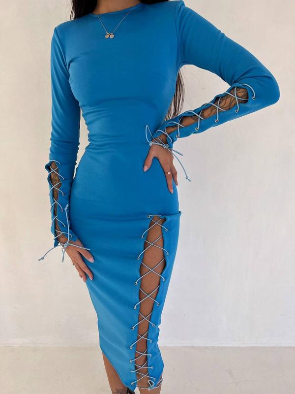 Сукня міді зі шнурівкою на ніжці та на рукавах ▫️ціна: 760 грн ▫️тканина: трикотаж Джерсі ▫️розмір: S та М