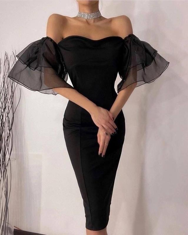 Модель 225 Силуетна сукня з відкритими плечима✨ Тканина: костюмка, фатин Колір: чорний Розміри: 42-44, 44-46 🏷Ціна: 635 грн