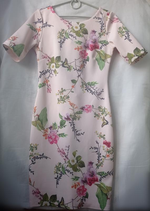 Сукня плаття квітковий принт приалене р. S Стан відмінний, тканина тягнеться. заміри довжина від плеча 91 см плечі 36 см ПО під рукавами 41 см ПО талії 35 см ПО бедер 45 см ПО низ 42 см довжина рукава від плеча 27 см Склад 95% поліестер 5% еластан Пересилаю.
