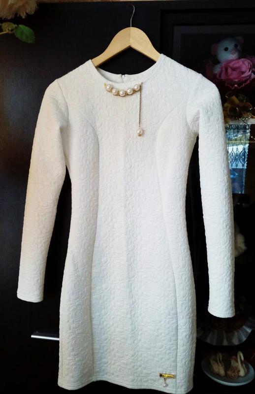 Платье рельефное белое Exclusive, с длинными рукавами! Выглядит очень богатым! Покупалось за 899 грн, продаю намного дешевле! Замеры по запросу. Размер 42!