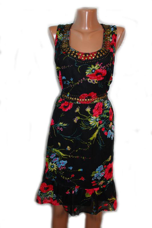 Платье в красивый принт маков и фурнитурой / e-vie, индия, 14/42
