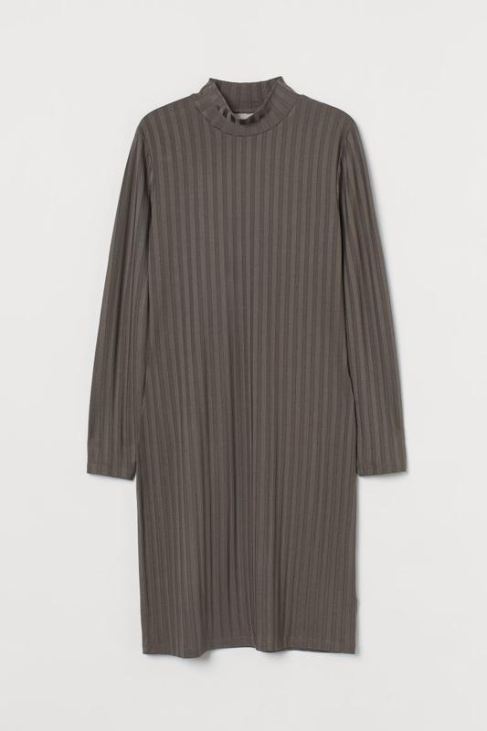 H&M Платье длиной до колена из трикотажа в рубчик из смесовой вискозы с легким блеском. Облегающая модель с высоким воротником и длинными рукавами. Без подкладки. 🏷️S(36)__кофе-мокко-болотный Длина 91, плечи 34, рукав 5, 5, грудь 40, пояс 37, бедро 45 🛍️ОТПРАВЛЯЮ 2-РАЗА В ДЕНЬ 🚀НОВАЯ и 🚜УКР 💵ПОСЛЕ ПОЛНОЙ ОПЛАТЫ 🍿ТОРГА НЕТ