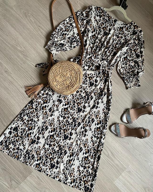 Сукня в анімал принт 10 р Бірки зрізані Пог 45-50(складки) пот 39-43 тягн постег 56-62 Лінія таліі завищена і опущена топ 36/42 довж 120 рук 48 Пл 37-41
