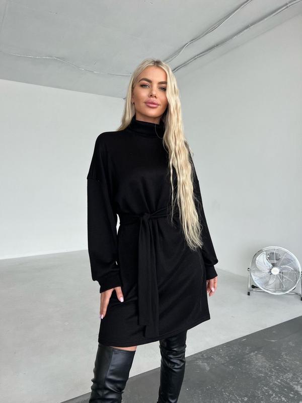 Жіноча сукня Розмірний ряд 42-44;46-48 Тканина; двустороння Ангора Кольори: сірий, чорний, бежевий, пудра та жовтий Сукня вільного покрою, з довгими рукавами, з горлишком, з пояском Супер якість Модель 5371